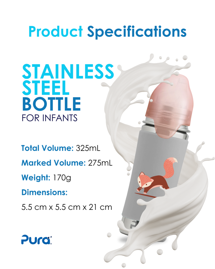Pura Kiki® 325ml Infant Stainless Steel Bottle - Fox