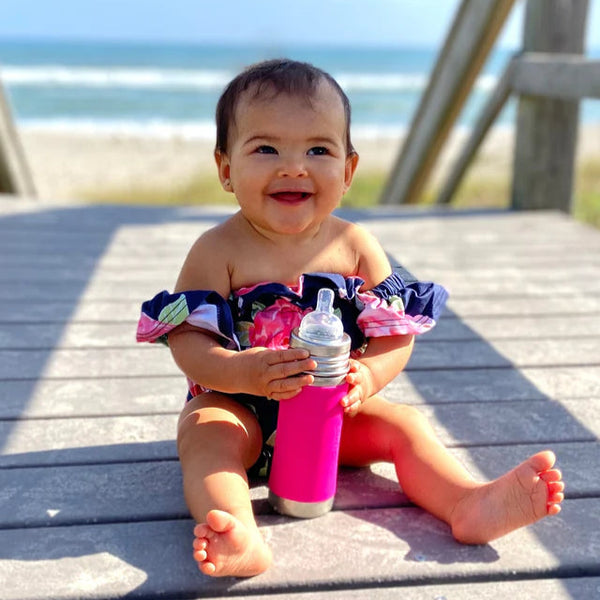 Our award winning 325ml Infant Stainless Steel bottle is 100% plastic-free, environmentally progressive, and adapts to the needs of your growing child. Both the bottle and collar are crafted from safe, high grade #304 stainless steel and our Natural Vent Nipple™ is made from medical grade silicone.
