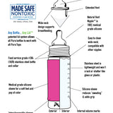 - Baby Grows...Bottle Evolves™: This bottle easily converts into a sippy bottle, straw bottle, or sport/water bottle by simply swapping the teat out for another Pura Silicone Lids.
