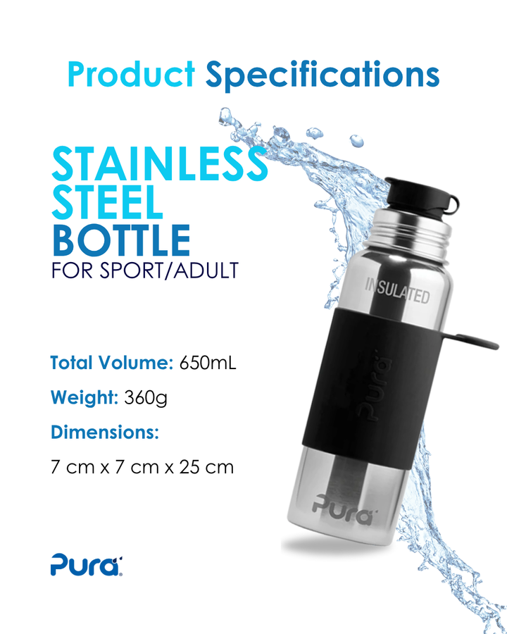 As with all Pura bottles, the 650ml Insulated Sport can be used with any of our medical-grade silicone lids from nipples and spouts to straws and flat lids, making it a flexible choice for any age or stage.