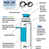 - Zero Plastic… Zero Yuck™: Bottle and collar are crafted from safe, anti-bacterial #304 stainless steel, while the Pura Silicone Big Mouth® Sport Top is made from 100% medical-grade silicone.